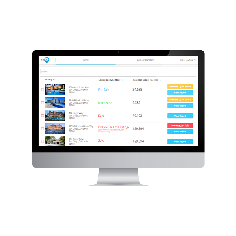 Cue showcases all of your listings/ products automatically on mobile devices. We track each of your product and show them to thousands of potential clients in the area of your choice.